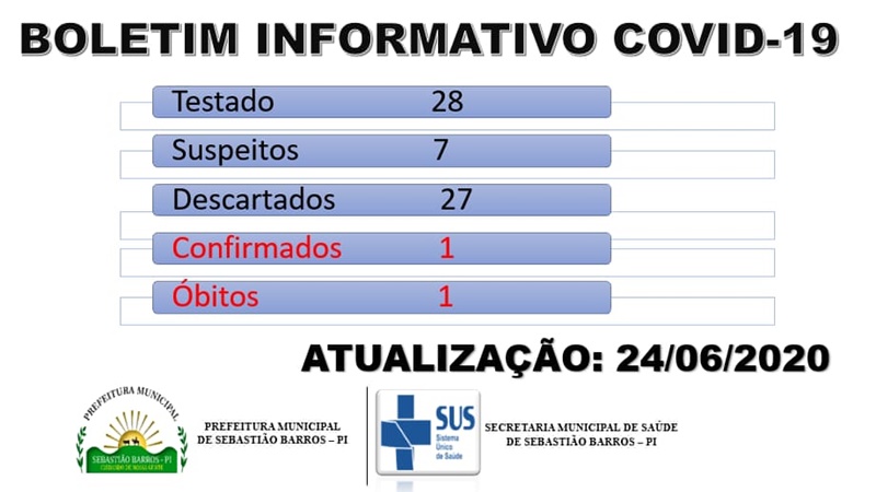 24 JUN 2020 Paciente de 60 anos do município de Sebastião Barros, morre vitima de Coronavírus em Teresina